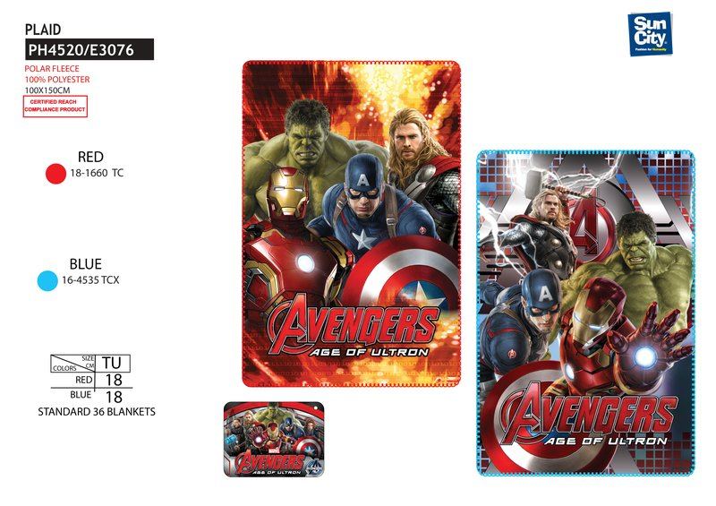 Suncity PH4520 Copertina Plaid 100x150 Cm 10 Avengers M | Catalogo prodotti | Basile Giocattoli SRL - Ingrosso di giocattoli e cartoleria a Verona