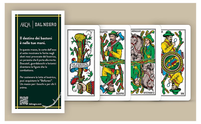 In questo mazzo, nel seme di bastoni le carte dall'asso al sette mostrano le ferite negli abeti rossi provocate dal bostrico, un parassita che li porta alla morte. Boscaioli, guardiaboschi e botanici diventano le figure che lo combattono.