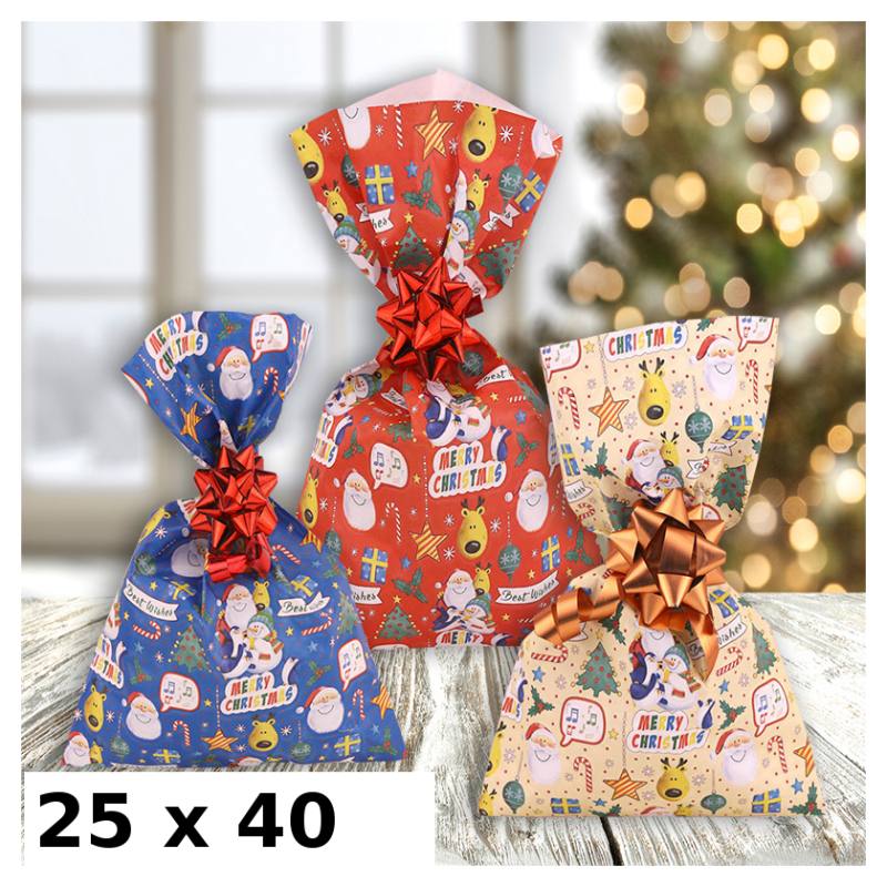 Confezione 100 Buste Regalo Natalizie In Polipropilene Misura 25x40