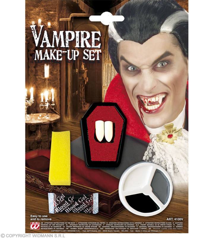 Widmann 4100V Set Trucco Vampiro (2 Canini In Vaschetta Bara. Adesivo Termoplastico In Granuli 1.4 G. Gel Sangue 3 Ml. Make Up In 3 Colori 4.5 Ml. Spugnetta) | Catalogo prodotti | Basile Giocattoli SRL - Ingrosso di giocattoli e cartoleria a Verona