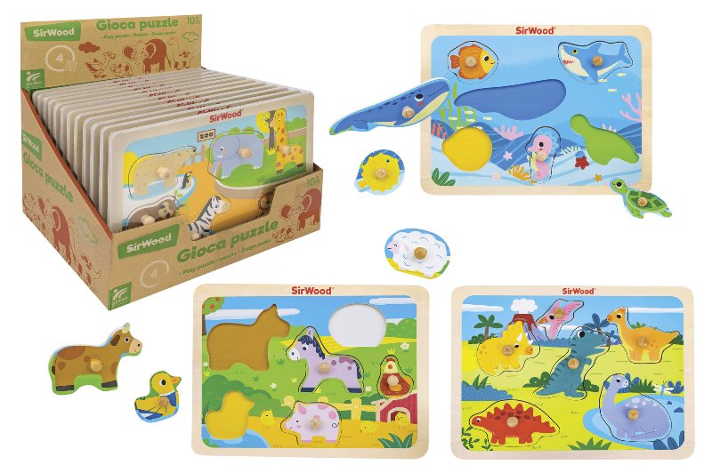 Puzzle Animal Zoo/fatt/mar/dino Legno 12pz D/box