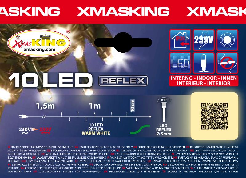 Catena Lineare Mb 10 Led Bianco Caldo Diam.5mm Reflex, Luce Fissa, 230v, Uso Interno, Cavo Verde, Dimensioni 1,5+1m, Sacchetto Con Cartoncino Color Appendibile (xk Art. Led-i Mb 10-f 230v).