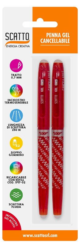 Scatto Srl 598-02 Bl. 2 Penne Gel Cancellabili 0.7mm Rosso - Ricaricabile | Catalogo prodotti | Basile Giocattoli SRL - Ingrosso di giocattoli e cartoleria a Verona