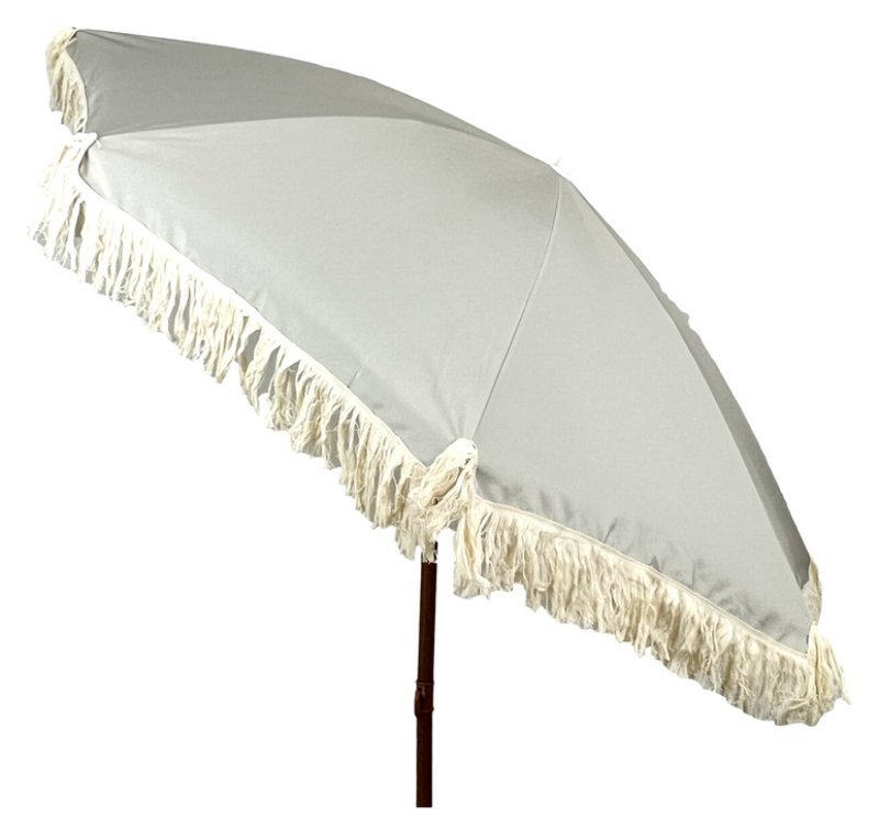 Ombrellone Mare In Poliestere Diametro 200 Cm Con Palo In Acciaio Effetto Legno E Frange