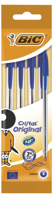 Bic 8308601 Blister 4 Penne Blu Cristal Original | Catalogo prodotti | Basile Giocattoli SRL - Ingrosso di giocattoli e cartoleria a Verona
