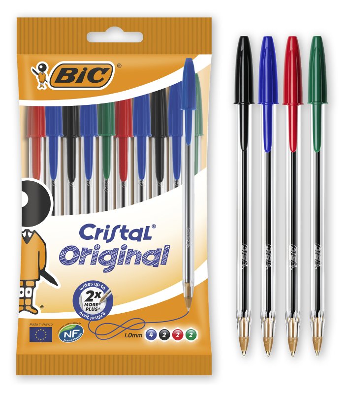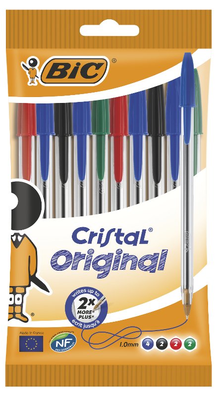 Bic 830865 Blister 10 Penne Cristal Original Assortite (4 Blue 2 Black 2 Red 2 Green) | Catalogo prodotti | Basile Giocattoli SRL - Ingrosso di giocattoli e cartoleria a Verona
