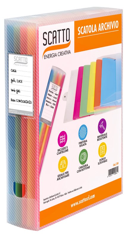 Scatto Srl 284 Scatola Archivio C/5 Cartelline Col.fluo | Catalogo prodotti | Basile Giocattoli SRL - Ingrosso di giocattoli e cartoleria a Verona
